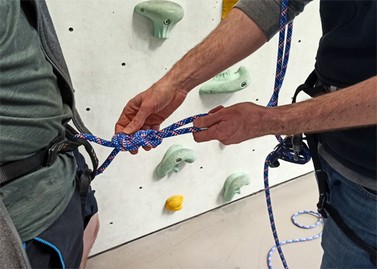 Foto: Bevor es losgeht, wird unter fachlicher Anleitung der Achterknoten kontrolliert.